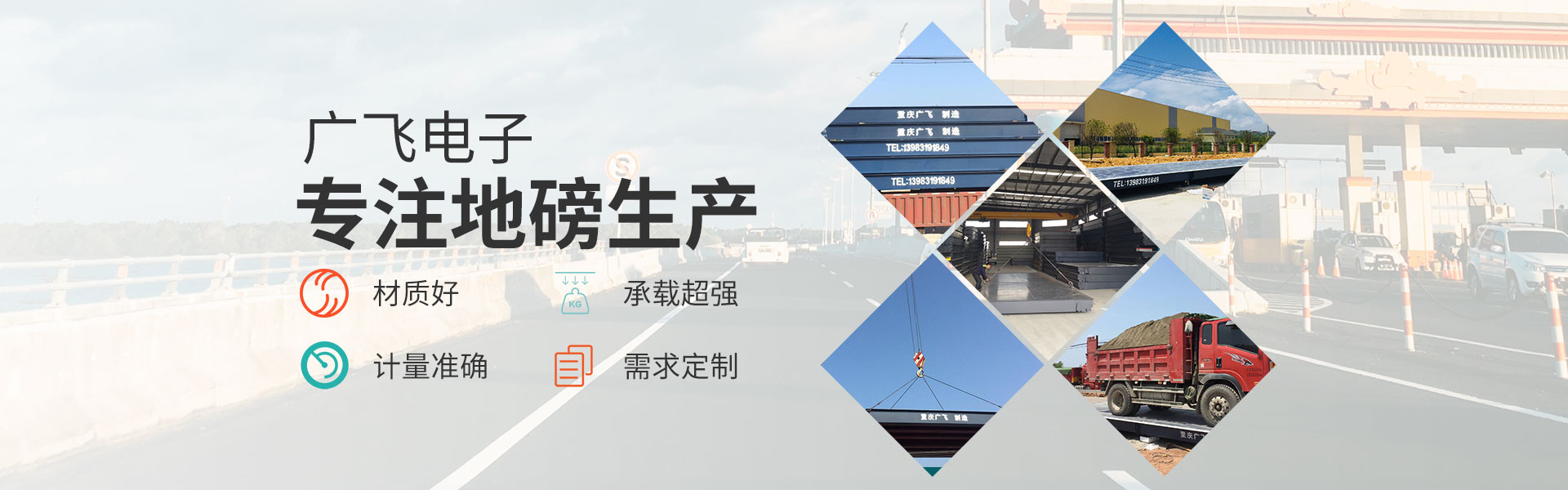 重慶廣飛電子有限公司,是一家集衡器生產(chǎn)、技術(shù)研發(fā)、產(chǎn)品銷售及售后服務(wù)于一體的高科技企業(yè)。 產(chǎn)品囊括電子汽車衡(電子地磅)、無人值守地磅稱重管理系統(tǒng)、電子地上衡、智能稱重管理系統(tǒng)、電子軌道衡、電子吊秤、電子臺(tái)秤、電子皮帶秤、鏟車秤、公路超載超限系統(tǒng)等全系列稱重產(chǎn)品。